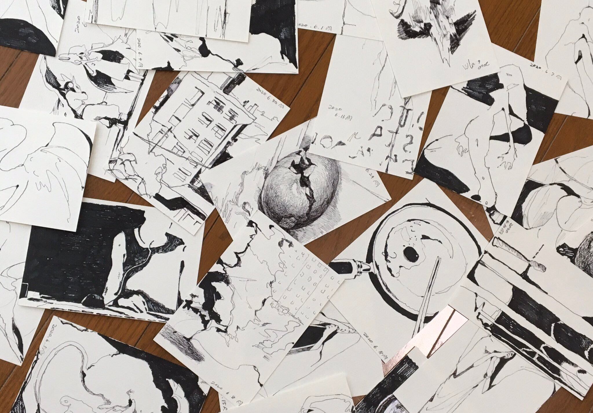 100mm×148mm(ポストカードサイズ)/画用紙にペン